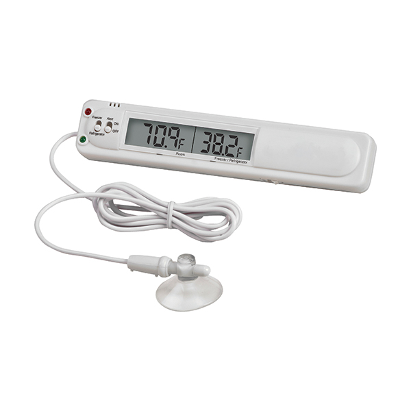 A suction cup secures the probe inside the freezer, while hook-and-loop tape allows the main unit to attach externally for convenient viewing.