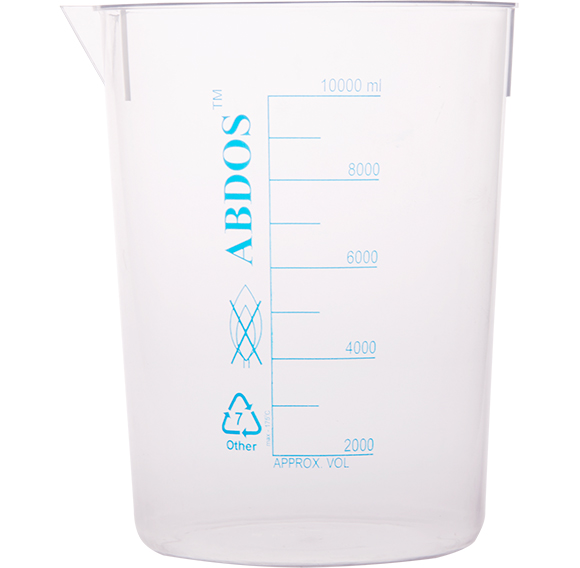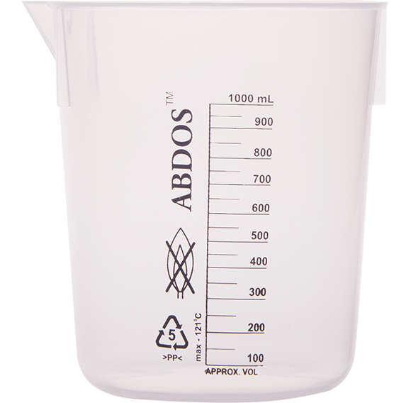 ABDOS Beakers Without Handle offer accurate measurement and mixing, made from durable, clear PP and TPX with excellent chemical resistance and a stackable, space-saving design.